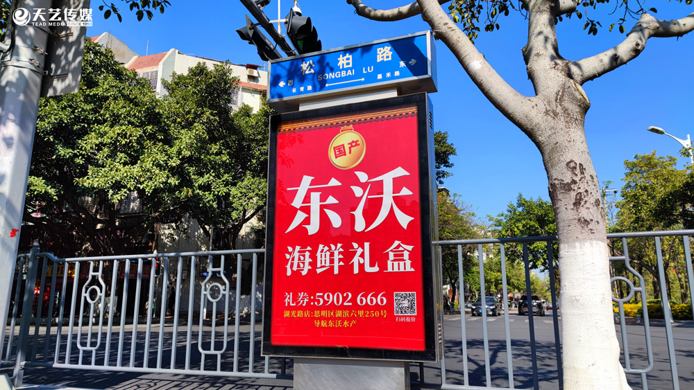2021開(kāi)年大吉,東沃海鮮與天藝傳媒攜手,全市百座路名牌提前預(yù)祝:祝廈門全市人民2021年年有余,新年節(jié)節(jié)高。