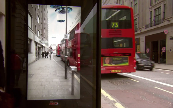 數(shù)字戶外,創(chuàng)意無限。比方說,百事在倫敦的候車亭屏幕上做過的AR廣告,讓等車的人可以看到UFO、飛人、老虎等動態(tài)畫面,看起來就像是真的一樣,如果事先沒有準備的話,人可能會被嚇到。